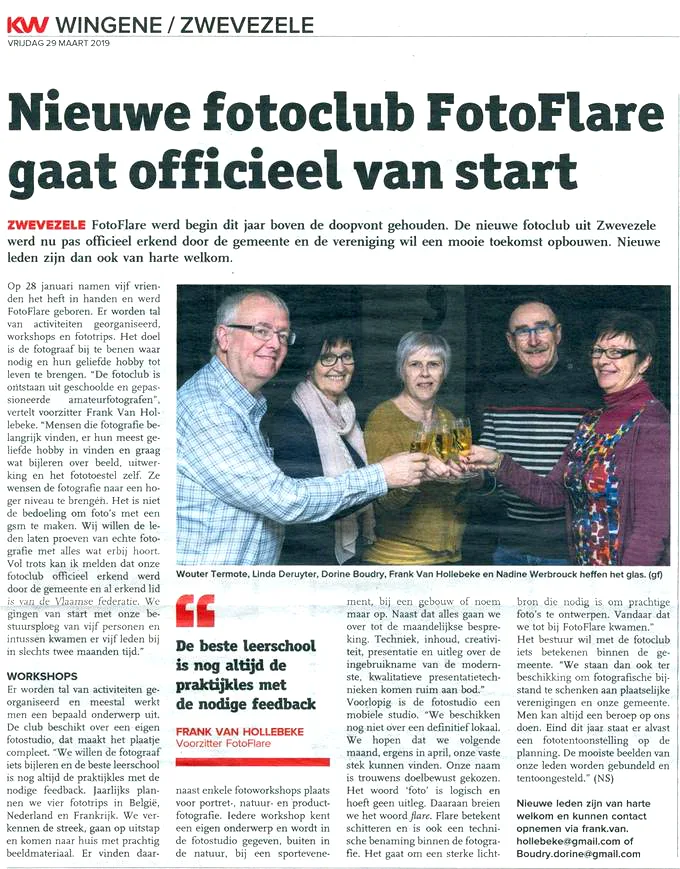 Op 28/1/2019 werden ter gelegenheid van de geboorte van fotoclub “FotoFlare” “bubbels” geschonken, een nieuwe fotoclub in Zwevezele.